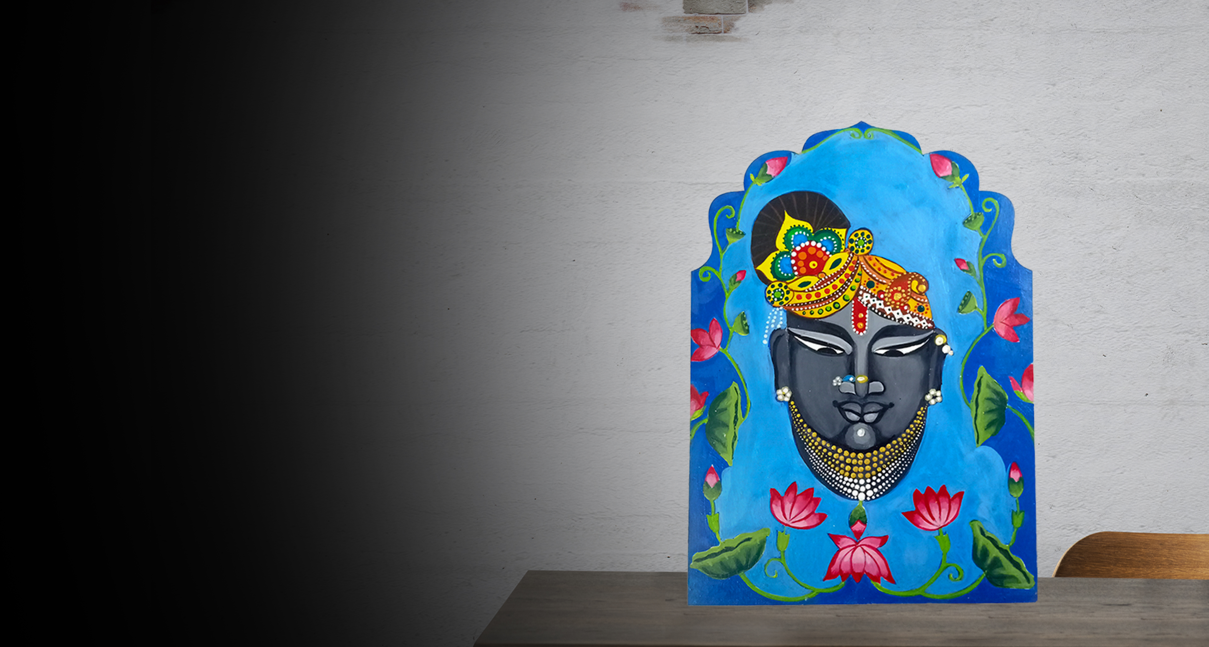 Amongst the plethora of traditional art forms that India abounds in, one such art form, Pichwai, depicts the famous tales of Bhagwan Shri Krishna. Pichwai painting originated approximately five centuries ago in the temple town of Nathdwara, near Udaipur in present – day Rajasthan – it began when the local artists started creating intricate and embroidered decorations depicting the various life events of Shri Krishna such as Raas Leela, Janmashtami, Govardhan Puja, et al. While ‘Pich’ stands for ‘back’, and ‘wai’ stands for; hanging’ in the local dialect, these paintings depict Shri Krishna in various 'leelas' with the moon, lotus blooms, peacocks, parrots or cows, and are set in the lush vegetation the artists found aplenty in their surroundings. Pichwai paintings reflect the classic Indian tradition of Guru-Shishya as the intricacies of this art are passed down through the generations. Creating a Pichwai painting may take several months because of the intricate designs and embroidery work. Initially, Pichwai were painted on handspun starched cotton cloth, using completely organic and natural colors, paints and even brushes. Over time, and with the impact of commercialization, artists have now started using natural as well as acrylic colours to give the atheistic touch to these paintings.