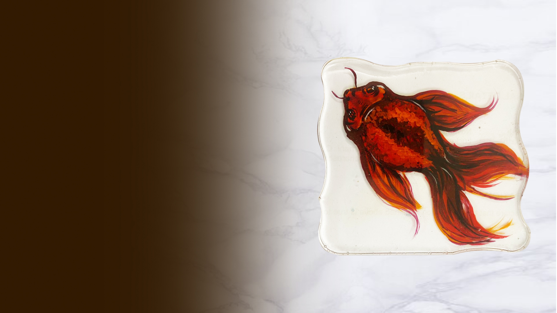 Resin art is a type of art that uses epoxy resin as the primary medium. Epoxy resin is a clear, high-gloss, and viscous liquid that, when mixed with a hardener, creates a durable and glass-like finish. In resin art, the resin is poured onto a flat surface, such as a canvas, wood panel, or tabletop, and then manipulated in various ways to create a design or pattern. This can include swirling the resin, adding pigments or other materials, and using heat to manipulate the resin. Once the resin has cured, it creates a glossy and durable surface that can be used for a variety of purposes, including wall art, jewelry, and home decor. Resin art has become increasingly popular in recent years due to its unique look and versatility. In this Video you will learn how to make your own 3D Fish Painting on a Resin Art tea coaster.
