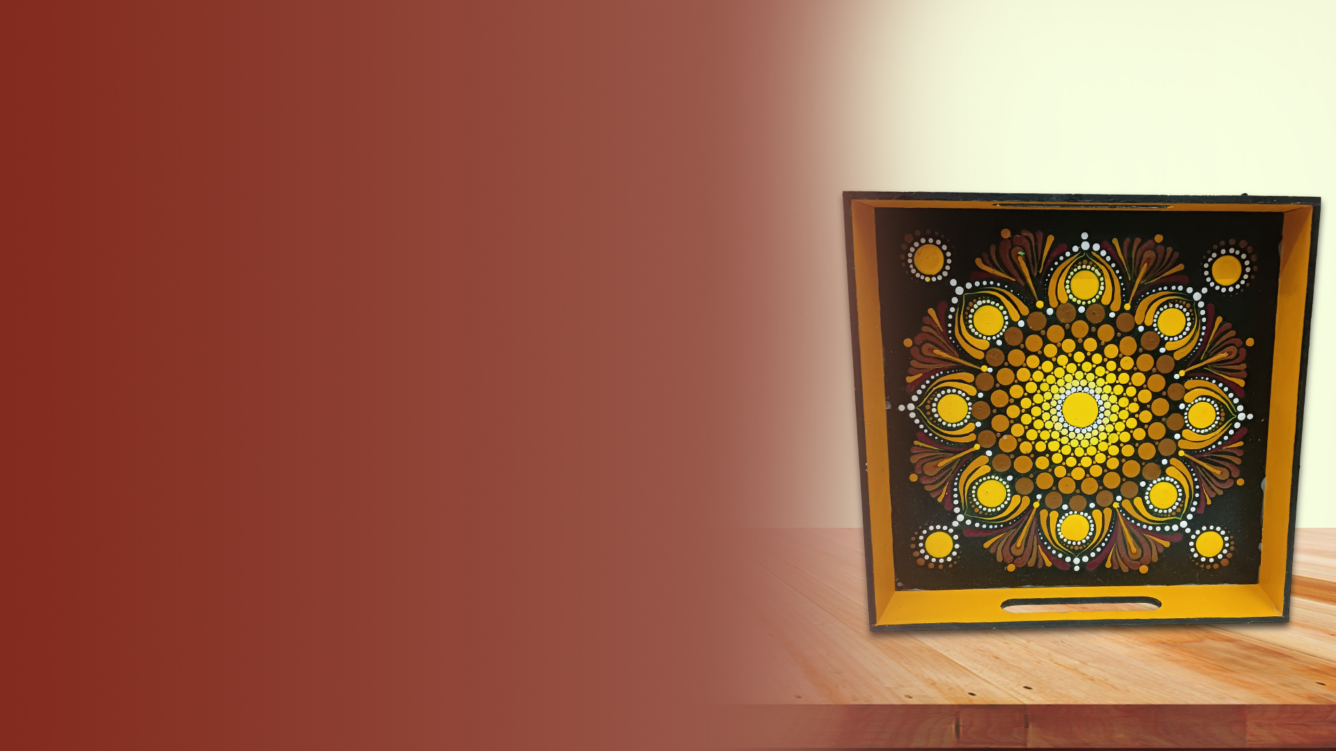 A dot mandala serving tray is a unique piece of functional art that combines the beauty of mandala patterns with the practicality of a serving tray. Created using a technique called dotting, intricate designs are meticulously painted onto the surface of the tray using small dots of paint. These designs often feature geometric patterns, floral motifs, or other intricate arrangements, all arranged concentrically around a central point. Dot mandala serving trays not only add a touch of elegance and style to any table setting but also serve as a conversation piece, showcasing the talent and creativity of the artist who crafted it.