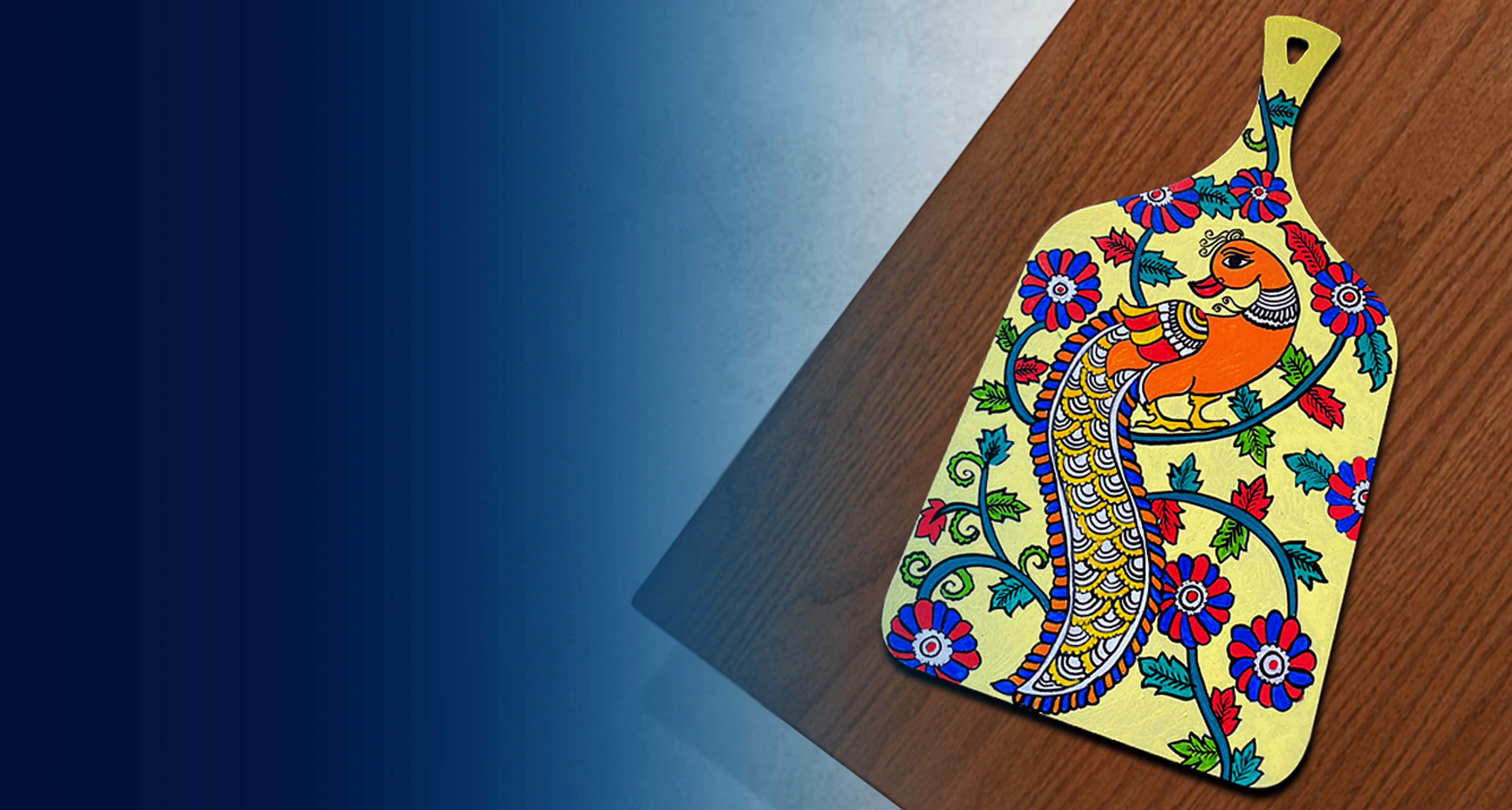 In ancient India, folk-singers wandered from one village to another, narrating stories from the epics, in ballads and songs, to the village folk. In course of time, this tradition of story-telling changed its medium to cloth and canvas paintings and thus was born the beautiful art form of Kalamkari – in the villages of SriKalahasti and Masulipatnam, both in present-day Andhra Pradesh. This 3000 years-old art form thus has two distinct styles, named after the two villages of its origin - the Srikalahasti style , developed in the temples and focused on themes of Indian epics of Ramayana and Mahabharata, images of gods and goddesses; and the Masulipatnam style - influenced by Persian motifs and designs. Kalamkari art traditionally uses earthy colours like indigo, mustard, rust, black and green, with bold outlines, using natural dyes. For instance, craftsmen extracted black colour by blending jaggery, water and iron fillings which they used for outline of the sketches ; while mustard and yellow were derived from boiling pomegranate peels; red hues were created from barks of Maddar or Algirin; likewise blue was obtained from indigo and green was obtained by mixing blue and yellow together. The artists who worked on the Kalamkari painting scrolls were known as Jadu Patuas or Duari Patuas, loosely translated as magical painters.